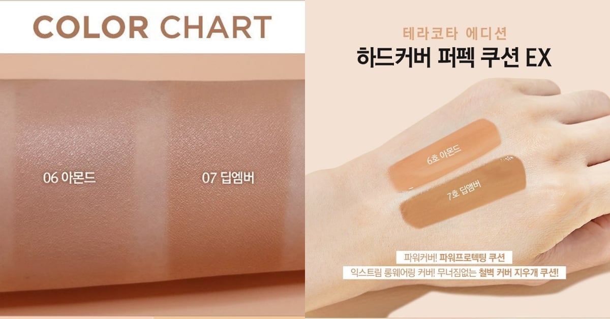 底妝產品包括:粉底液和氣墊粉餅和遮瑕液,都推出了兩種深色色號,06號是偏粉的杏仁色調,07號則是偏黃的深棕色!如果還不太確定自己比較適合哪種色調的妞妞,也可以參考官網上貼心附上的色號對照表!