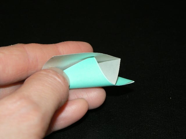 Step2將其中一角塞入另一邊,變成三角形就完成了(會不會太簡單,花不到10秒的時間?!)