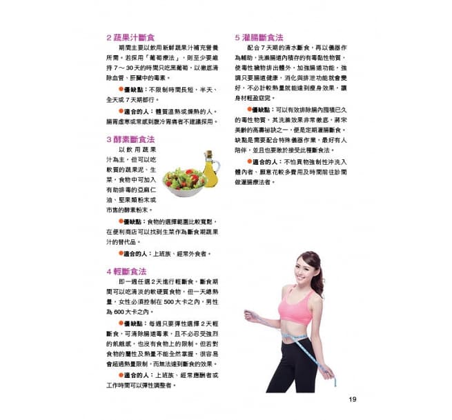 由專業營養師著作!不但精闢解析名人私房瘦身招、斷食法的優缺點,還設計出健康又不發胖的食譜,從神奇瘦身蔬果汁、高纖低卡蔬菜湯、享瘦輕食點心列出詳細製作方式,同時還加碼附上豐胸食補、簡單纖體塑形運動以及常見食物GI值(升糖指數)速查表等…根本是斷食教科書~