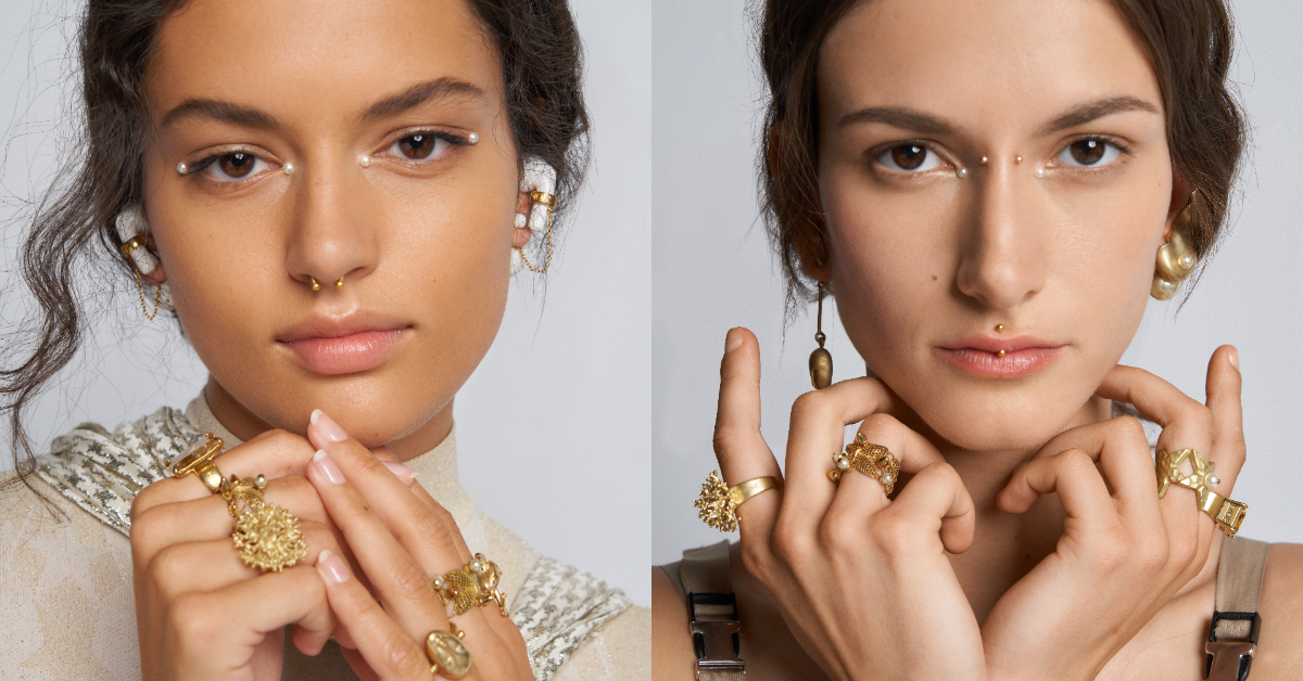 Peter Philips表示:「眼妝是本次妝容的重點。為了使雙眼深邃有神並提亮雙眸,這次的眼妝我特別專注在眼影的部分。我使用了全新限量的「經典五色眼影#022 度假限量版」,將乾淨的裸粉色、溫柔低調的藕粉色及香檳金於眼皮上暈染,再以相同色系於內眼皮處加強堆疊,創造動人神采並彰顯迪奧 2022 度假系列的高級訂製質感。接著將白色珍珠分別點綴於眼頭、眼中或眼尾以加強眼部妝容,增添眼妝光彩。接著於睫毛塗上薄薄一層「迪奧絕對搶眼飛翹睫毛膏#091防水版」,讓雙眸瞬間放大有神,卻同時能維持自然簡潔的妝感。此外,另一個重點是眉妝,我為模特兒選擇適合他們膚色的「迪奧搶眼造型眉膠筆」,打造線條俐落的歐美眉型,讓五官更立體精緻,創造自然且令人驚艷的時尚妝容。」