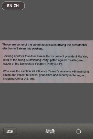 雖然說雲端服務、平板電腦等實用工具已經滿風行的,但還是時常遇見需要使用紙本的場合,例如臨時會議的大綱,或是你進行語言學習時所閱讀的雜誌等等。此時,如果我們都僅能以照片或是PDF檔案的方式進行儲存的話,對於資料搜尋來說一點也不實際!此時,當你遇見要掃描文字檔案的時候,就是請TextGrabber +Translator出馬幫忙的時候了!