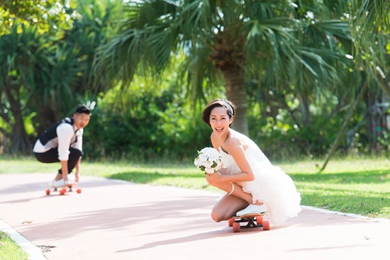 40歲的藝人Gigi(林如琦)和小他2歲的部落客史丹利(賴宥銘)去年10月在沖繩克菈薇塔教堂完婚,兩人將在本周六於台灣舉辦婚禮。最近Gigi和史丹利的婚紗照出爐,請來造型師李明川量身替Gigi設計三套服裝-俏麗運動風小洋裝、正式典雅的婚紗禮服以及紅色貼身裸背禮服,如今婚紗照也搶先曝光!大家快來先睹為快吧