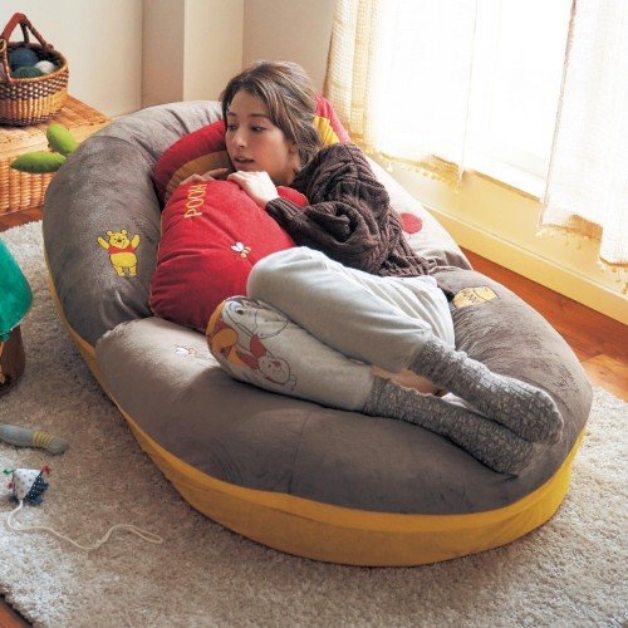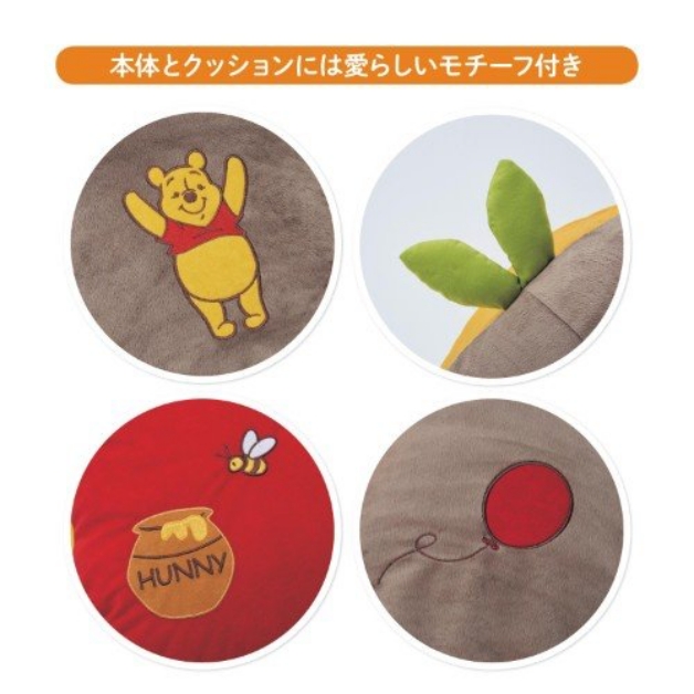 這個新推出的小熊維尼沙發床,有三種用法,一個人可以當直接當成沙發椅,兩個人坐可以攤平放成橫的,再來也可以當成沙發床,這個椅子總共有14段角度變化,完全隨你喜好調整,以樹樁為設計主題,配上也是以木頭色加上維尼的紅色和黃色為基礎,兩個抱枕都是附在內的!