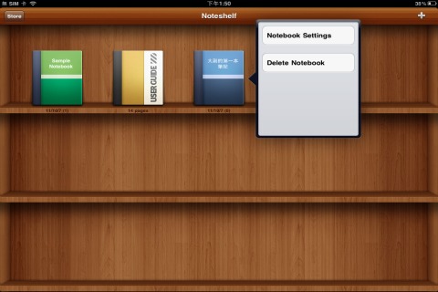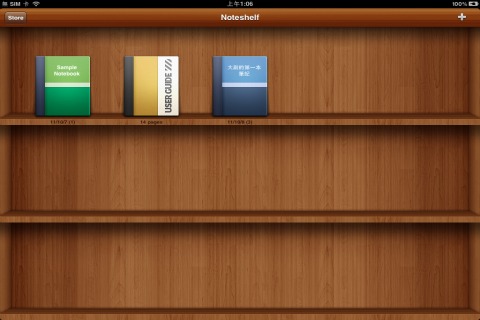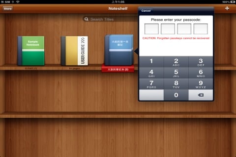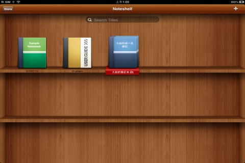 將來建立許多不同筆記本後,書櫃可以上下滑動之外上方也有搜尋列提供使用者加速搜尋筆記本;要將不同筆記本歸類的話只要拖曳到另一本就會自動歸類為同一群組喔,除此之外還可以用密碼作加密來保護,對使用者來說可是相當方便且安全的管理方式