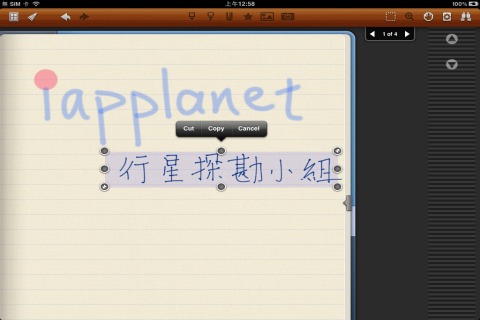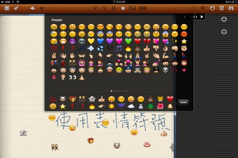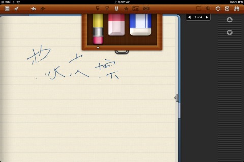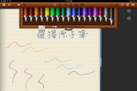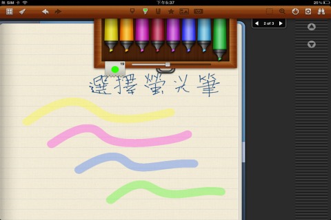 原子筆和螢光筆各提供17種和8種顏色作挑選,下方可以選擇字體大小;書寫過程相當的流暢,不僅如此也會感應筆頭壓的程度而讓字體有粗細,感覺真的就很像拿一支原子筆在上面書寫喔!螢光筆的顏色深淺適中不會蓋過原來的書寫字,可以很方便的用來做註記,讓整體內容更具美觀