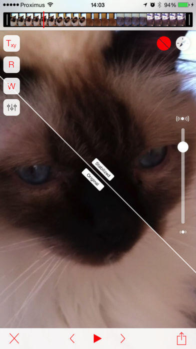 再來款手殘妞必備的視頻編輯軟體(XD),這款App除了可以修剪影片之外,還能夠自動將晃動的地方刪除,增強影片的穩定性,在編輯時還可即時查看前後的效果。