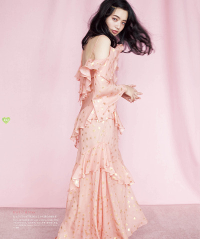 超可愛的菜奈以MERY代表粉色作為拍攝主題,難得的小露性感穿上充滿女人味卻不失可愛的裸背粉色洋裝。