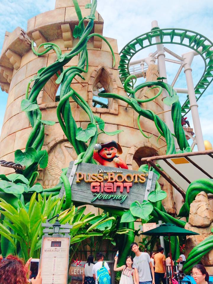 最後一個就是在2015年才剛開幕、全球首個「鞋貓劍客歷險記」主題懸吊飛車!這項妞編輯個人也超期待的,光是看到這座被魔豆藤蔓給重重圍繞的城堡外觀,就覺得夠壯觀了,身為鐵粉絕不容錯過啊!