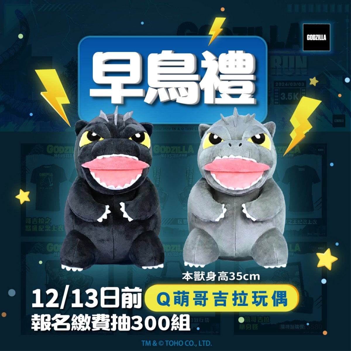 除此之外,12月13日前報名繳費完成即可抽超Q萌「哥吉拉玩偶」,每個場次各抽300組,喜歡Q版哥吉拉的粉絲們千萬不要錯過啦~