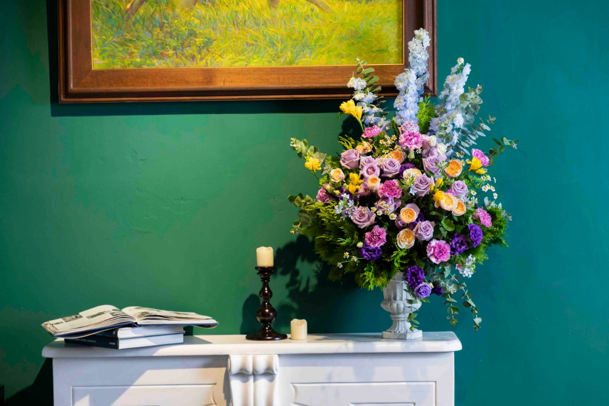 如果想為來訪的親友留下深刻、美好的印象,課程中也含有華麗浪漫的「客廳/玄關花與西式、中式2款餐桌花」,讓歡聚的時光更有記憶點。