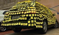 被便利貼覆蓋的車子其實是女友每天上下班用的代步車,男友總共花了5小時寫完1500張便利貼,找來朋友們幫忙貼了超過一小時,才完成這個計畫。