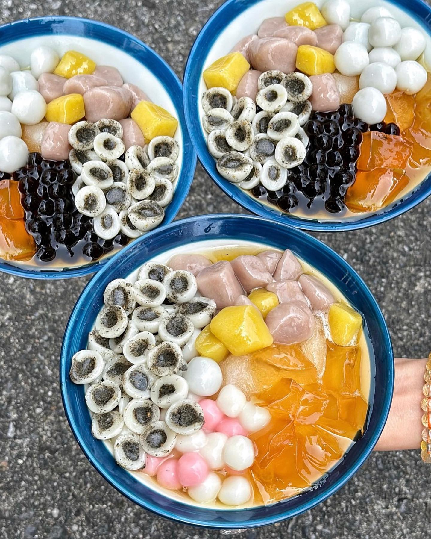 台灣老字號甜品店!位於寧夏夜市對面的人氣甜品店「豆花莊」,有別於一般豆花店淋的黑糖水,豆花莊的豆花選用甘蔗冰沙取代糖水,妞編輯最推薦「包芝麻餡」小湯圓,也有不少甜品控喜歡加帶有嚼勁的地瓜圓、芋圓或是珍珠配料!
