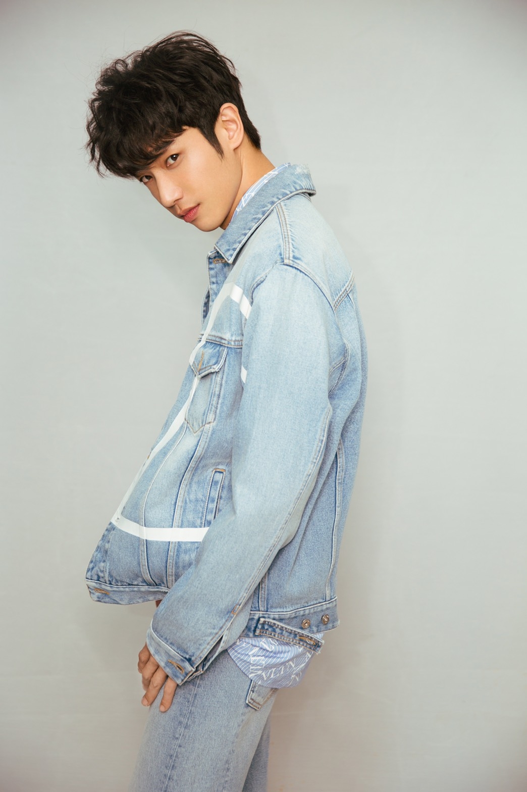 劉以豪在電影宣傳活動時,就身穿了Valentino超熱門、超多人穿的這套全身丹寧服裝,搭配品牌的圖紋襯衫,以豪臉上的笑容和萌帥的表情讓人心動啊~