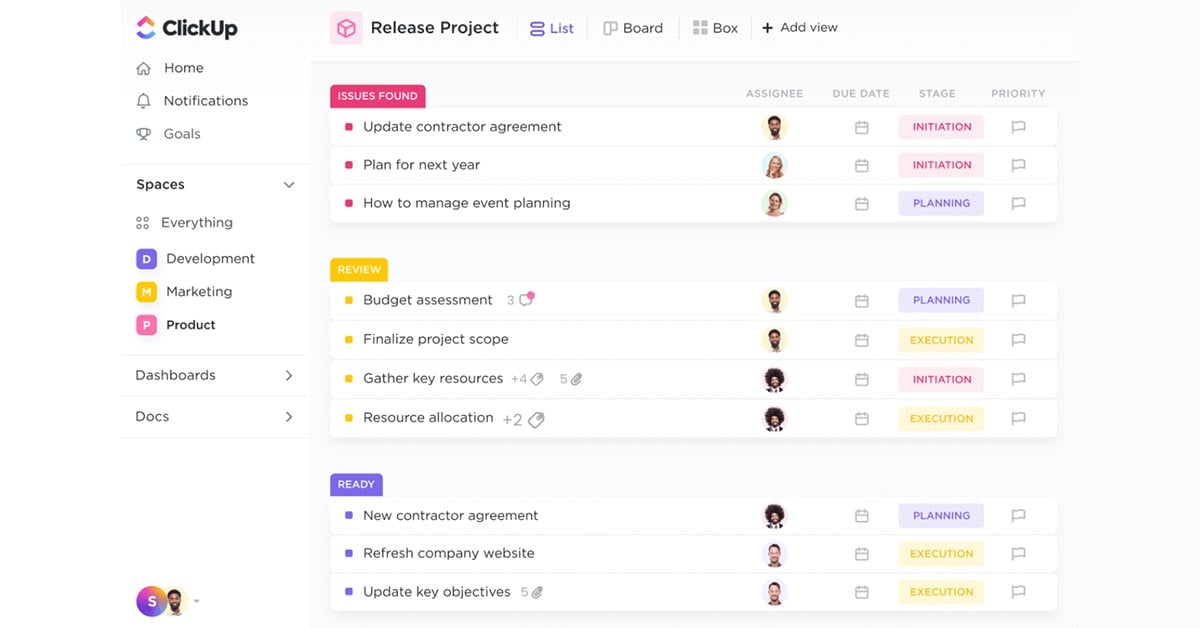 第三個要介紹的《ClickUp》跟上一個《Trello》有點像,都是用大看板將所有專案包裹住的系統設計,讓你可以一次看到所有待辦事項,也同樣有共同管理的功能,而《ClickUp》支援多種不同的類型功能,包含最基本的表格、甘特圖、看板和行事曆等等,使用者也可以依據不同團隊需求,快速轉換檢視模式,真是方便又簡單!