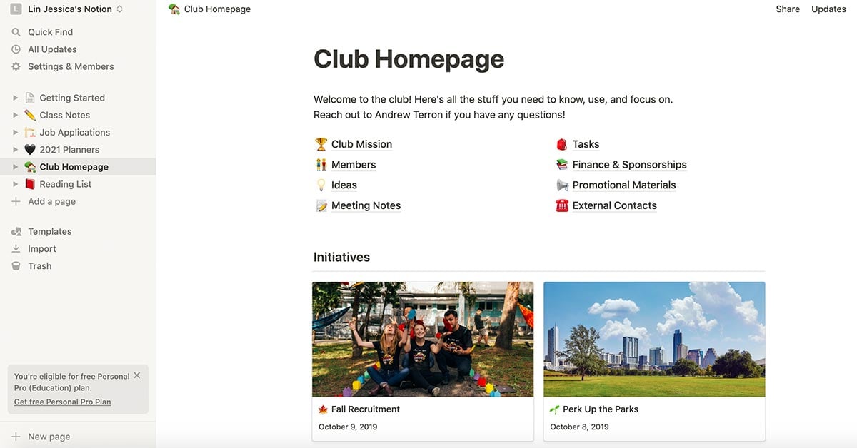 首先要介紹的第一個專案管理工具,是手機小姐覺得專案管理App中,功能最齊全的《Notion》!相信應該有不少人早就聽過這款工具了,《Notion》是一個支援多功能多平台的App,不論是在電腦、手機或是平板上都可以使用。常用的待辦清單、行事曆、筆記、專案管理或是資料庫功能都可以結合在《Notion》裡喔,而《Notion》的畫面簡單易懂,還有支援許多icon可以靈活運用,讓你的畫面簡單清楚又兼具可愛的元素,除了工作外也很適合拿來當作手帳App!