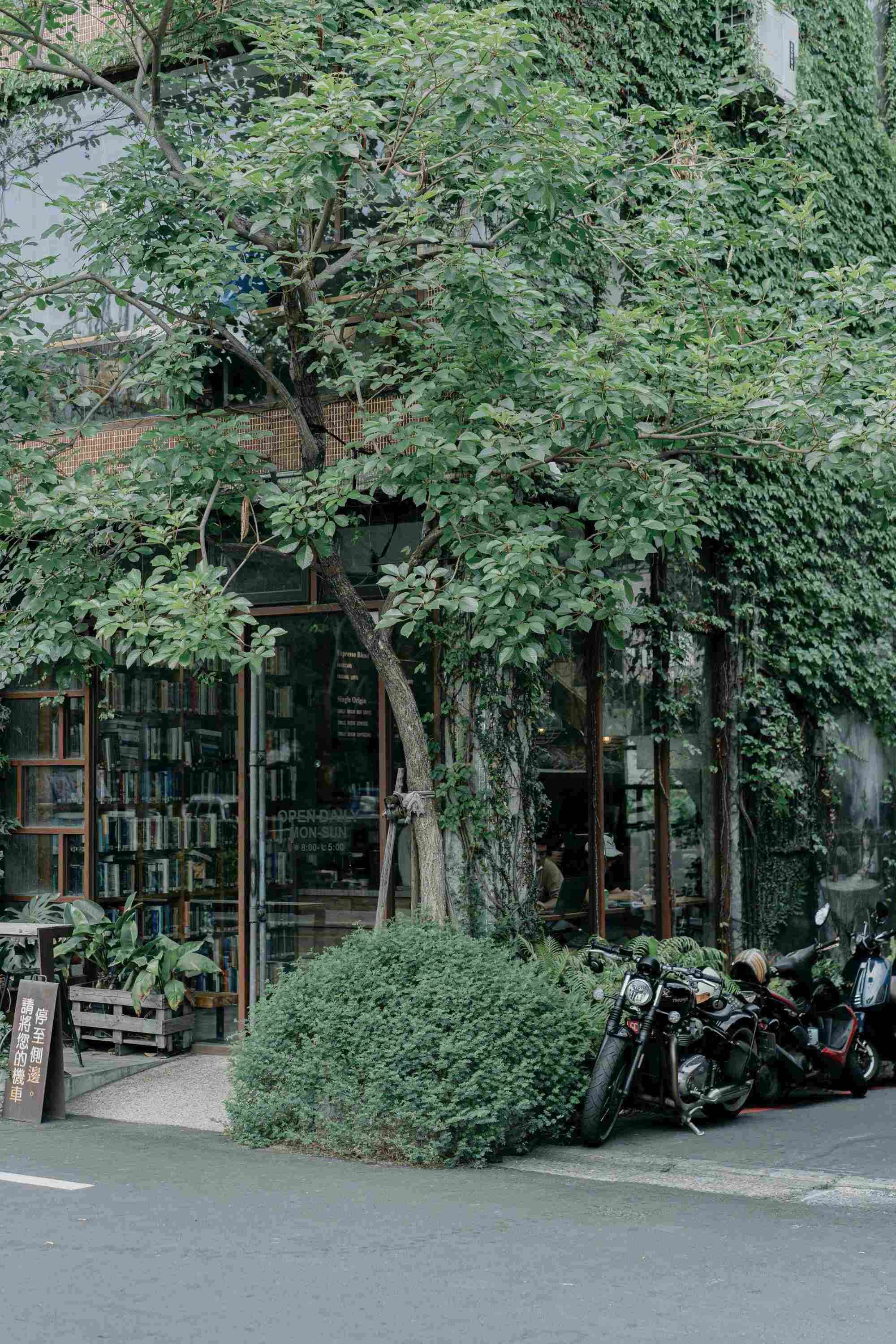 咖啡廳有著綠意盎然的外觀,是街邊最怡人的風景。