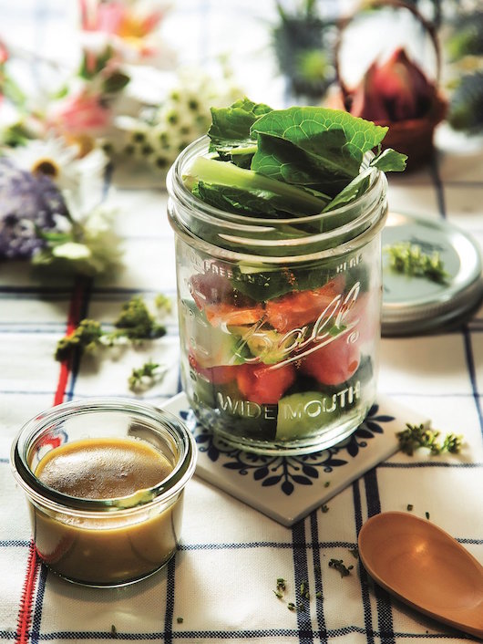 將紅蔥頭、橄欖油、雪莉酒醋、第戎芥末、蜂蜜調勻,以鹽、胡椒調味後,即可淋於生菜食用。