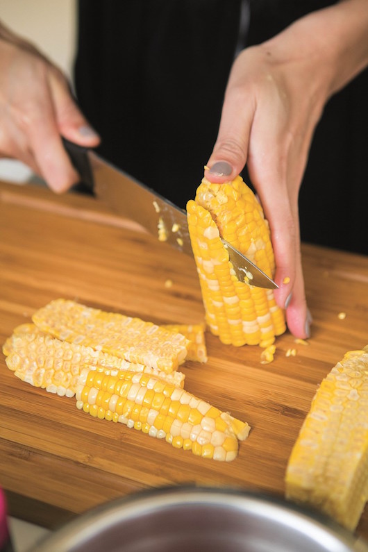 貼心小提醒:用新鮮玉米切片會比使用現成的罐頭玉米粒來的更鮮甜juicy唷!