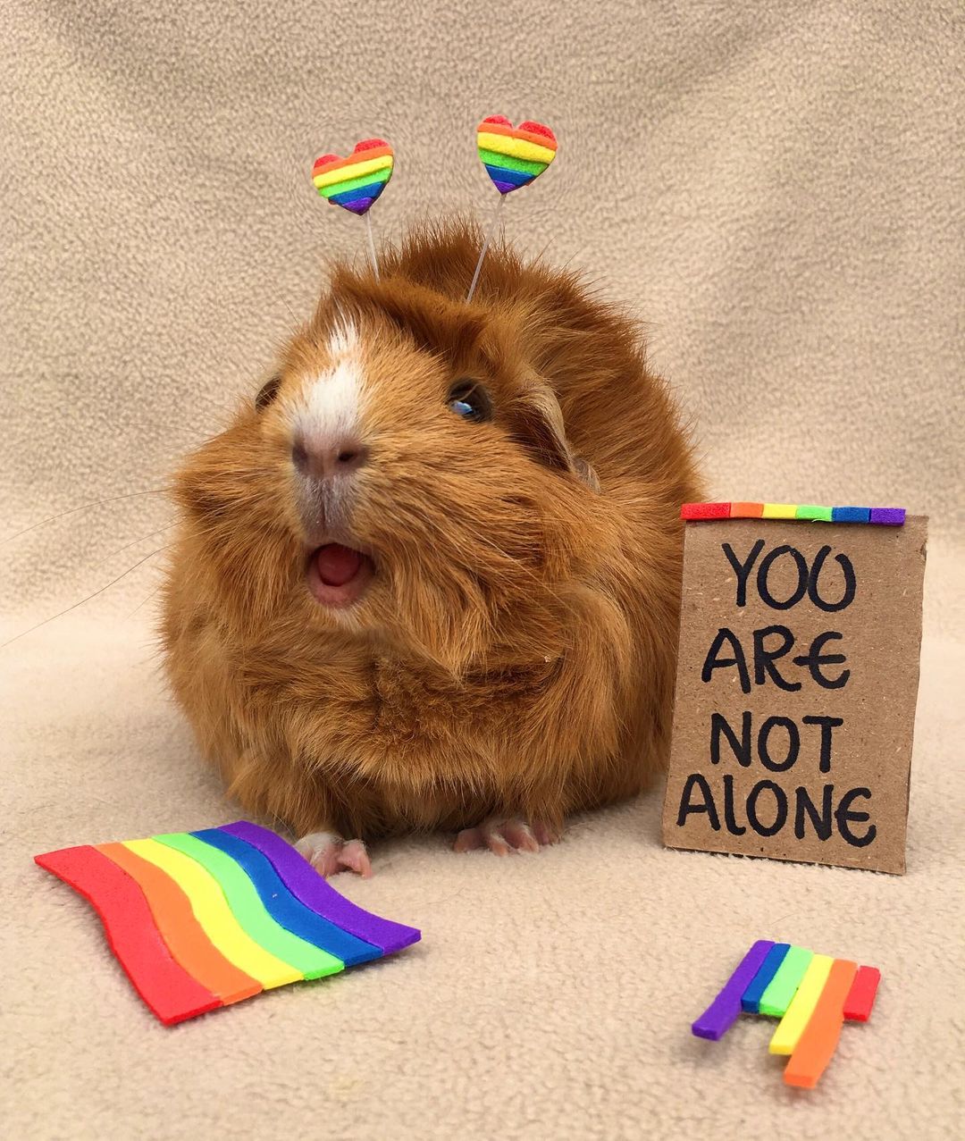除了宣導天竺鼠的飼養規範之外,飼主還會定期表示支持婚姻平權,他透過讓鼠鼠們拿著手作立牌、戴著彩虹愛心髮箍的模樣,來表達「愛」就應該不分種族、意識形態及性別,每一個人都會散發著自己的光芒,在屬於自己的舞台中閃耀。喜歡牠們的妞妞趕緊點點追蹤,這麼可愛的天竺鼠&刺蝟一家看了就超療癒!