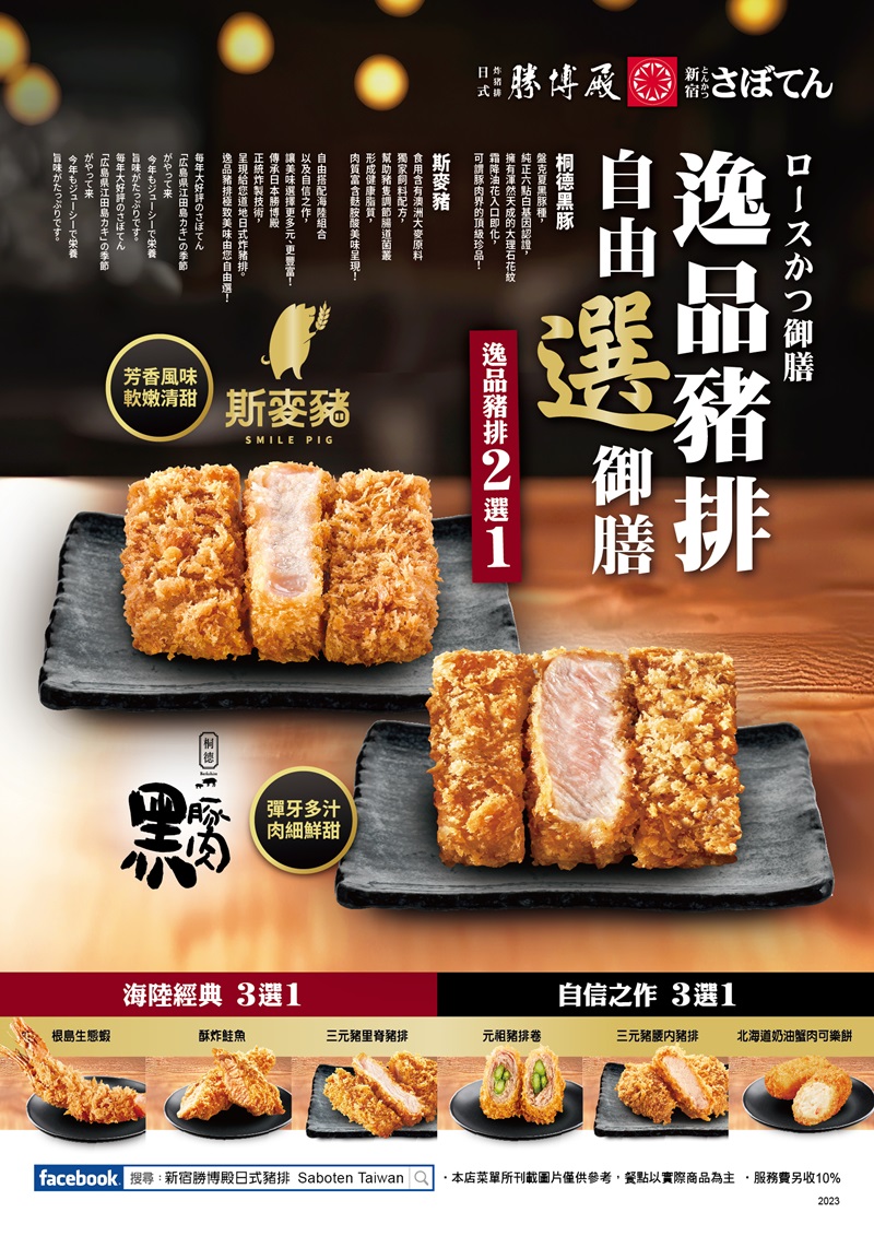 「逸品豬排自由選御膳」,夢幻逸品桐德鳶豬、唇齒留香斯麥豬,自信之作搭配