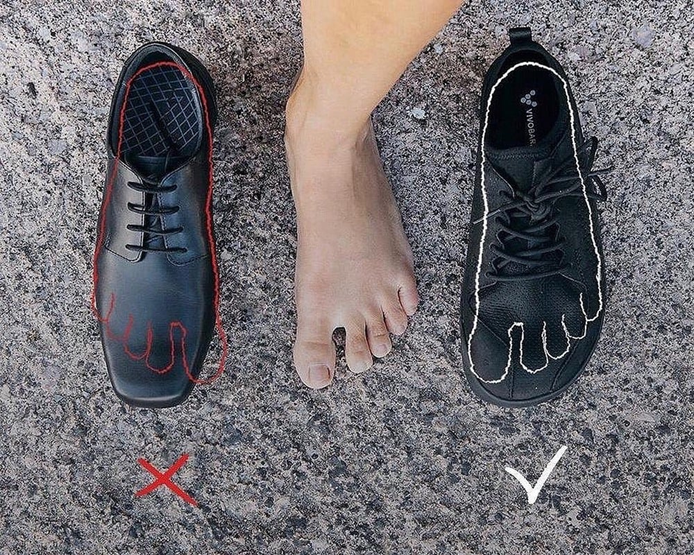 赤足鞋與傳統鞋款對比。圖:Vivobarefoot Taiwan