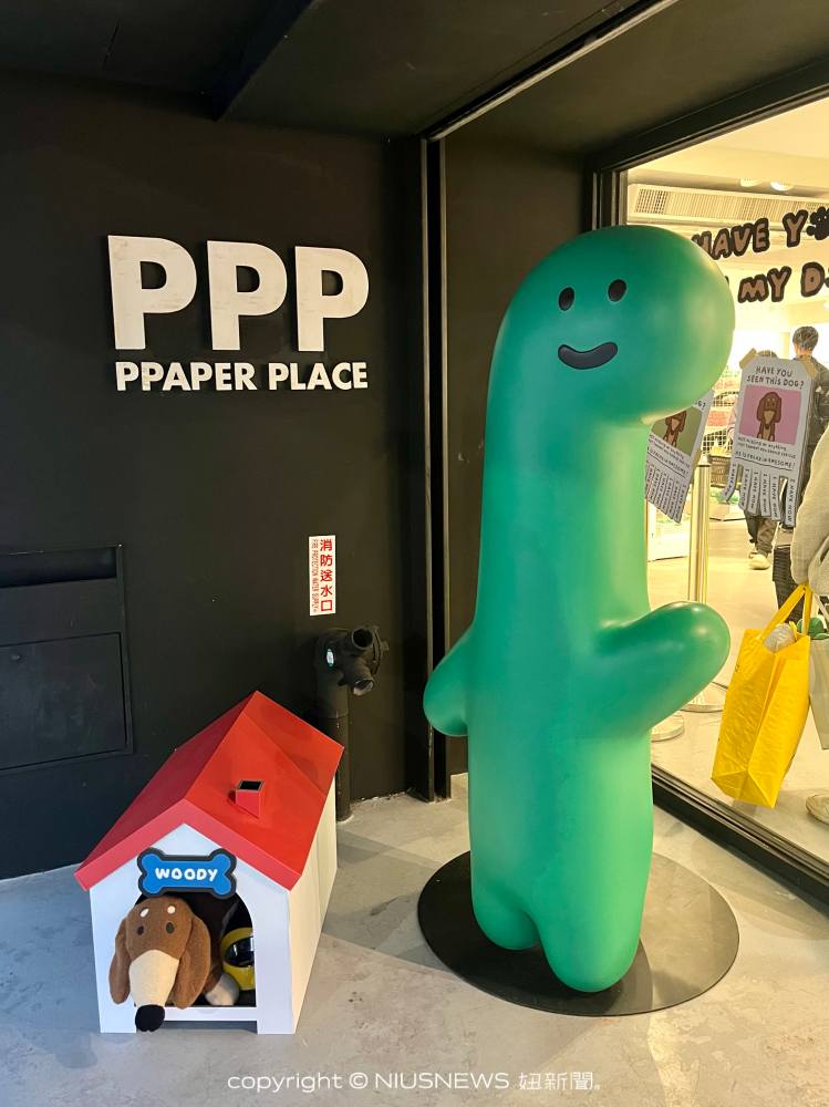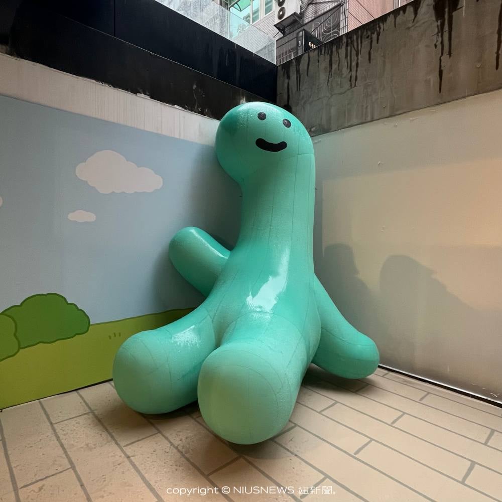 走近展覽空間,超顯眼的布拉基歐模型公仔就在門口迎接大家的到來,而寵物狗伍迪也悄悄出現在他的腳邊。不光這個在進場前登場的療癒小驚喜,展覽裡更設置了布拉基歐的超巨型氣偶,怎麼能不拍爆!