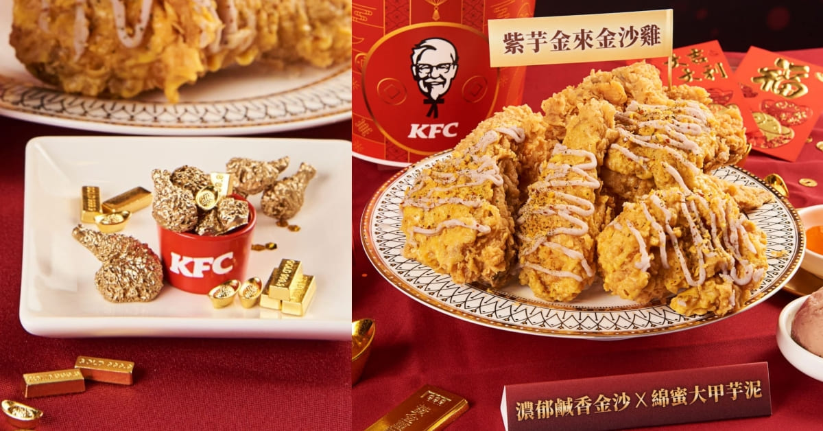 肯德基將過年必吃的功夫菜「芋泥酥鴨」,以全新方式呈現,推出「紫芋金來金沙雞」以招牌咔啦脆雞金黃酥脆炸衣為基底,裹覆特選紅土鹹蛋黃、搭配辛香料爆香後,所調和出的濃郁鹹香金沙醬,金黃炸雞搭配黃金金沙醬,再淋上綿蜜芋泥,鹹甜香氣超涮嘴!即日起至至2月24日限時推出,別錯過!