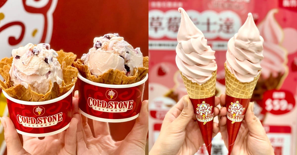 COLD STONE複合店即日起推出雙重甜點饗宴,除全新升級的「雙莓樂園冰淇淋」外,酷聖霜販售門市也推出「草莓卡士達霜淇淋」,添加日本具草莓之王稱號的甘王草莓,濃郁的草莓香氣與卡士達滑順質地完美融合,每一口都超療癒!
