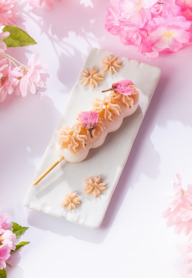 「櫻花串糰子」以櫻花製成的櫻花豆沙、鹽漬櫻花、鹽漬櫻花碎葉製成餡,特別將餡料做成「櫻花造型」,擠花鋪在白色串糰子上,給人一種粉嫩又典雅感,不僅色彩夢幻,吃起來的口感更是Q彈,身為糰子控的妞妞們,櫻花串糰子絕對是你們的首選必吃!(3月4日起販售至4月底)