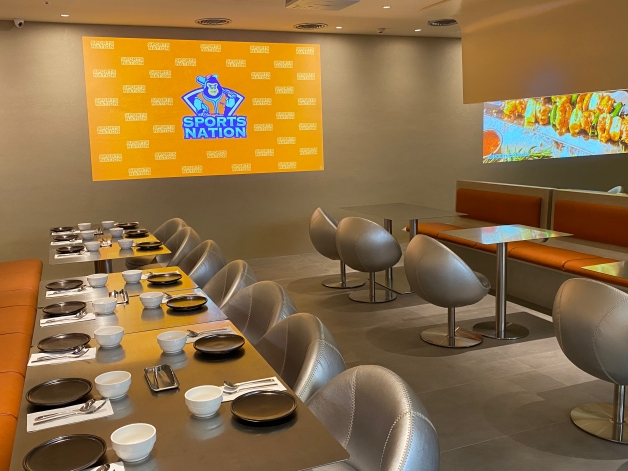「SPORTS NATION」佔地200坪,一口氣結合運動、潮流、時尚,寬8.3米的環狀螢幕會即時轉播各運動賽事,視線零死角!更有包廂式座位,獨立空間搭配電視,最適合約上三五好友一起狂歡、為自己熱愛的隊伍加油!另有開放式座位區,可觀賞大型投影;或只是想聚餐的話,也有另一種風格的獨立座位,可以和朋友們大聊特聊!