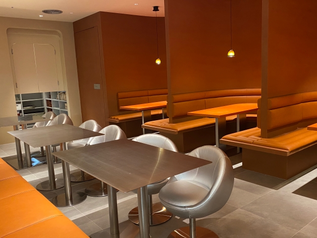 餐廳裝潢以品牌經典艷陽橘+金屬,呈現滿滿活力未來感,並結合入口通關閘門、棒球造型椅背、賽道造型卡坐沙發等球場元素,店員還會穿著球服,完美融合球場與酒吧,彷彿置身球場現場觀賽!還有還有,每天晚上7點至10點更有DJ表演,超嗨氛圍陪大家一起瘋整晚!