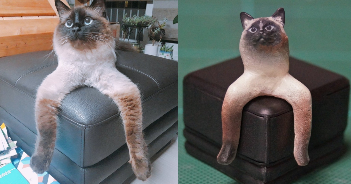 俗話說:「貓是水做的。」身為貓奴的妞編輯必須說這是真的啊!除了可以任意進出一些莫名其妙的小縫隙,也經常出現一堆謎樣的姿勢跟形狀XD我們家的黑貓伸展身軀的時候真的就是長這麼怪啊!像一種不知名的兩腳生物?做成模型真是超有喜感啦......