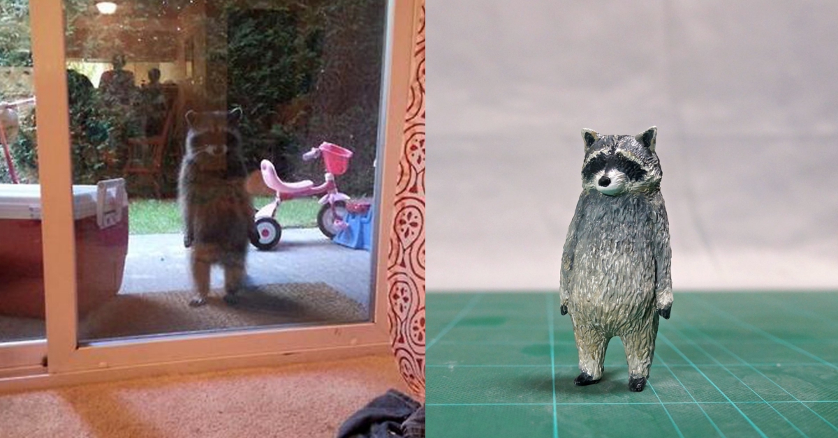 除了貓貓系列,他也做了一些其他的動物~像是這隻超莫名其妙的小浣熊(怎麼有點像人類)
