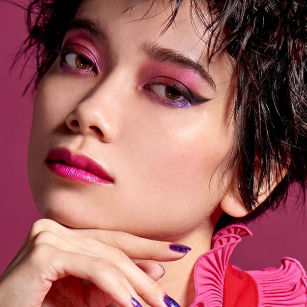 個性派的眼唇色選,彷彿把彩虹顏料潑灑在眼皮上,配搭搖滾風深紅唇色,變身成搖滾彩虹糖,魅力四射。