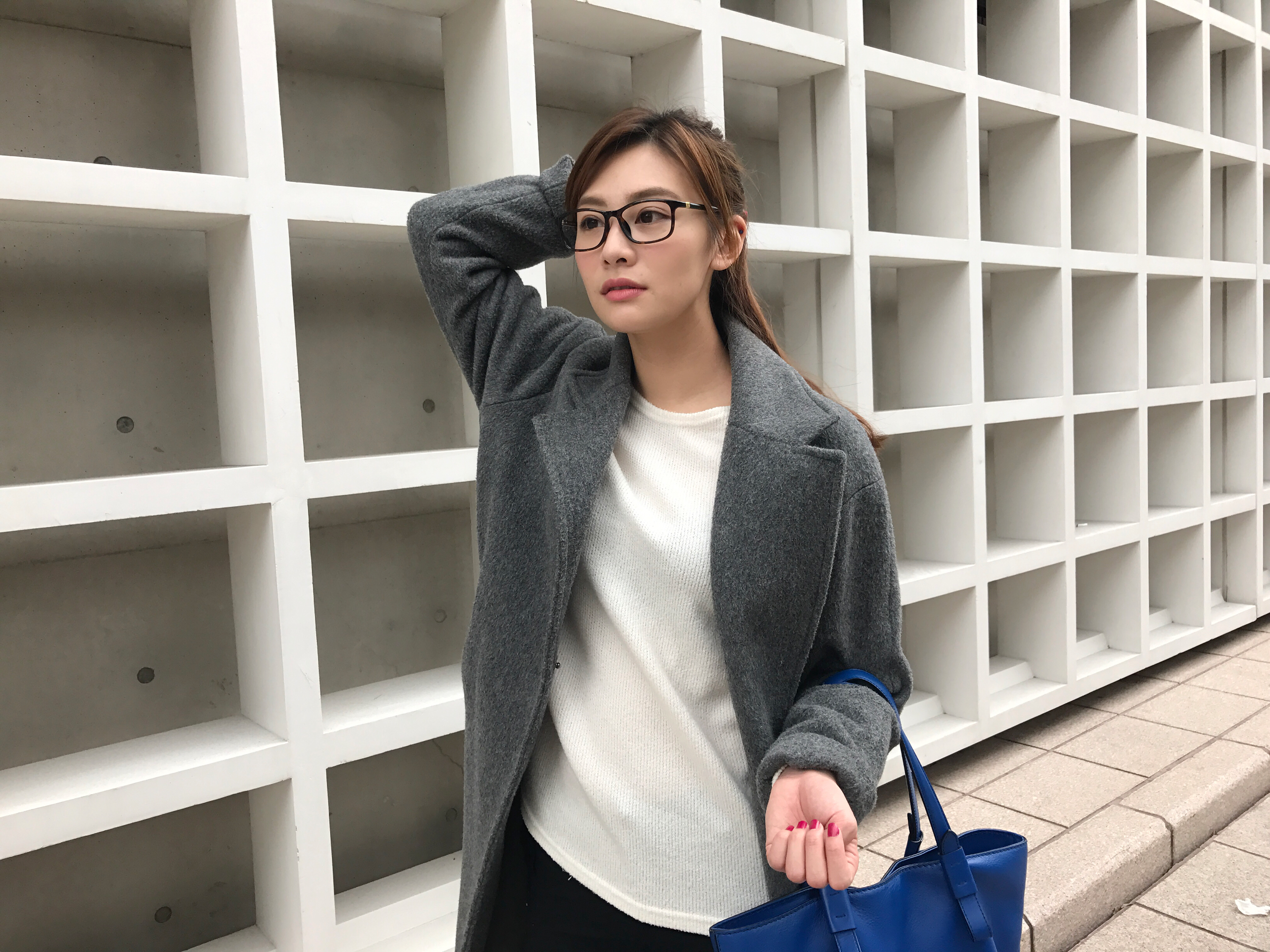 素色毛衣,外搭單一色系的大衣,不但有點頭重腳輕的厚重感,總覺得還是少了些什麼,搭上深色粗框眼鏡,臉部變得立體,整體看起來就很協調。