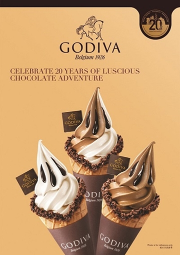 此外,為慶祝品牌進入亞太區20週年,明星商品霜淇淋特別以超優惠的紀念價答謝眾多巧克力迷的支持,一同慶賀這紀念性的一年!GODIVA 巧克力霜淇淋自推出即大受歡迎,造成許多話題與排隊熱潮,GODIVA巧克力霜淇淋口感細膩,再綴以馥郁的巧克力醬,甜筒邊沾有巧克力脆餅令口感昇華,與眾不同的霜淇淋代表著GODIVA 一直以來對產品品質的堅持。