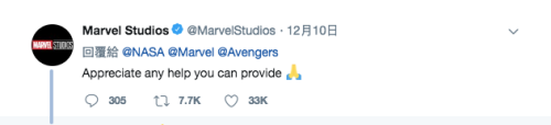 而MARVEL也轉發這則推特,表示「不論任何幫助都非常感謝」,看到這裡NASA差不多可以發射火箭上太空了吧?(快快快!)