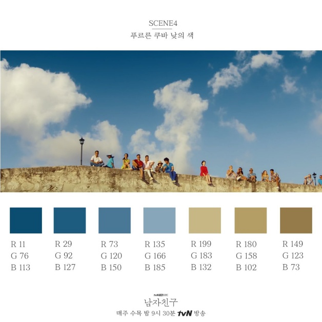 被藍天呵護的古巴白天,各種藍與棕和諧的出現,但照片中的車秀賢卻和其他人產生極大的距離,或許這就是身為首爾市長的女兒,泰京集團兒子鄭宇碩的前妻與一般人的距離吧!