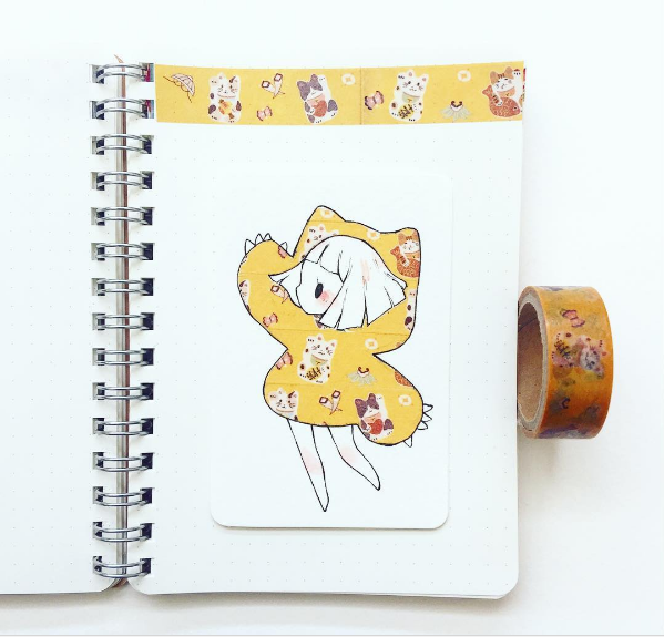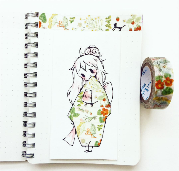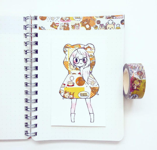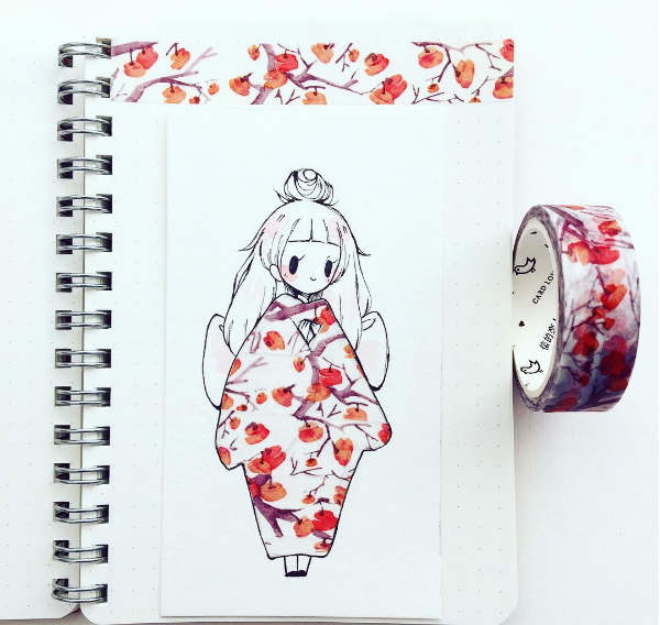 這位美少女插畫家在IG上發表了一系列以紙膠帶為創作基底的可愛插畫,Q版的日系風格跟紙膠帶超搭。之所以會拿紙膠帶來作畫,原來是因為這個插畫家本身也是個文具控!因為煩惱紙膠帶越來越多,決定利用紙膠的花紋設計衣服,讓它成為創作的一部分,還可以節省服裝的繪製時間,真是一舉兩得。