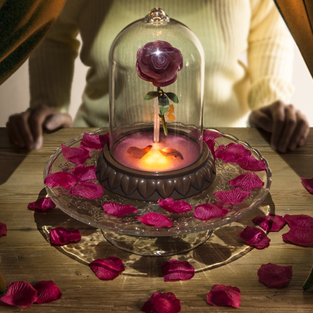 「美女與野獸」裡的「魔法玫瑰」,當所有花瓣凋零之時就是野獸的死期。這次的最大獎仿製了電影中「魔法玫瑰」的造型做成桌燈,燈泡安置在底座,燈亮時光透出玻璃罩的樣子非常浪漫。