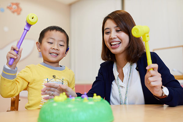 在雅文基金會中的環境相當「居家」,有臥室、廚房、客廳等生活情境,也有各式各樣的動物、人物玩具。課堂上,老師會用遊戲的方式在自然情境中跟孩子互動,帶領孩子一同認識這個世界,並教導他們發音、說話。乍看之下,其實就跟我們一般父母跟小朋友在家生活教學一樣呢!