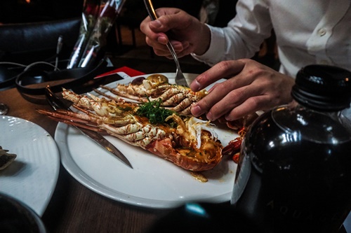 至古巴空運400~450g的大龍蝦開半後,以兩種方式烹調: