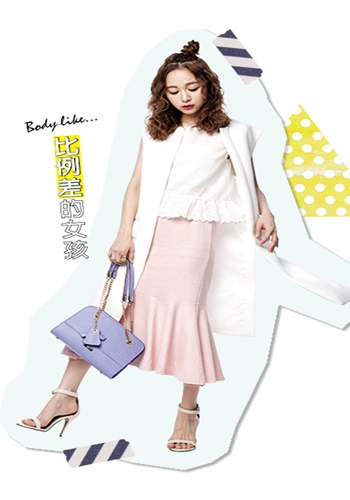 #緊身版型的高腰裙很適合下半身比例較短的女孩穿著,是一件就可以搭長比例的裙類首選!