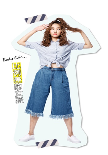 #五五身的女孩其實是很幸運的~不是肉肉甩不掉的問題都很好解決!高腰的短褲是妳選擇的第一優先,用高腰來增加腿的比例,只要再來雙高跟鞋,妳就變成長腿妹妹囉~