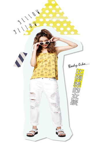 #上半身一樣短版是重點!這一季推出許多可愛樣式的傘狀背心,用來搭配破褲可以減輕上半身的視覺重量,整體看起來修長又可愛,也增加了穿搭的俏皮感!