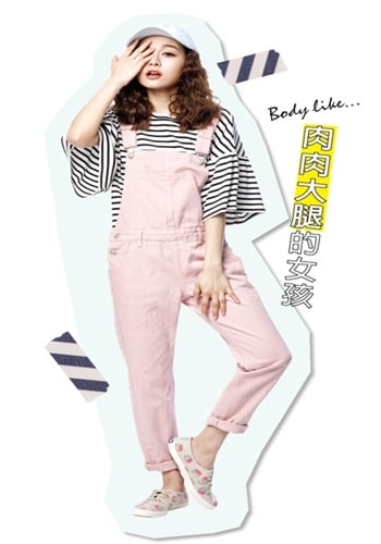#直筒版型的吊帶褲基本上也可以修飾掉肉肉的大腿部份,或是試著將吊帶調的長一些,讓吊帶褲更加的鬆垮,也可以將大腿的部分蓋住修飾~