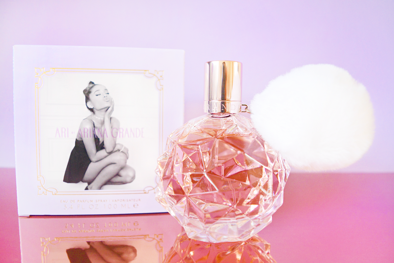 歐美明星非常流行推出個人設計的香水,去年僅22歲的Ariana也跟上這股潮流,推出第一支香氛「Ari by Ariana Grande」。從瓶身至香水風格設計全都不假他人之手,多角度切割如同寶石的瓶身搭配可愛毛球,就像Ariana給人的印象一樣,既性感又甜蜜。這一支主要帶花果香,後味則有麝香、木質香及棉花糖香喔!