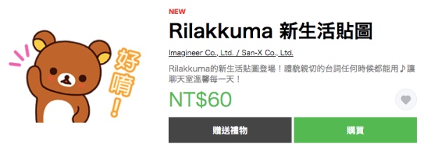 貼圖名稱:《Rilakkuma 新生活貼圖》
