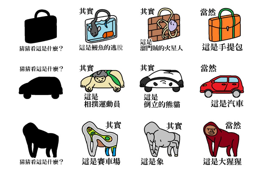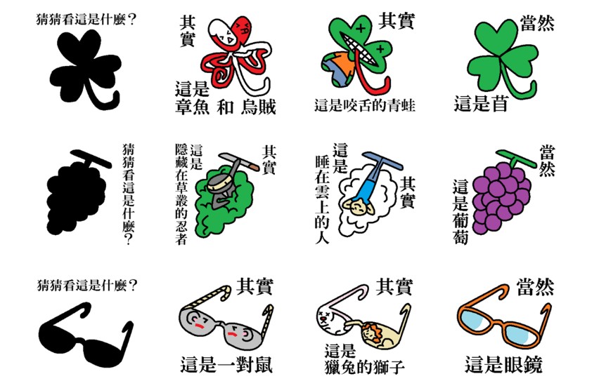 以上謎題大家都有猜對了嗎?透過這些超級無厘頭的剪影猜謎,大家也可以活動活動已經被社會定型的想像力喔~