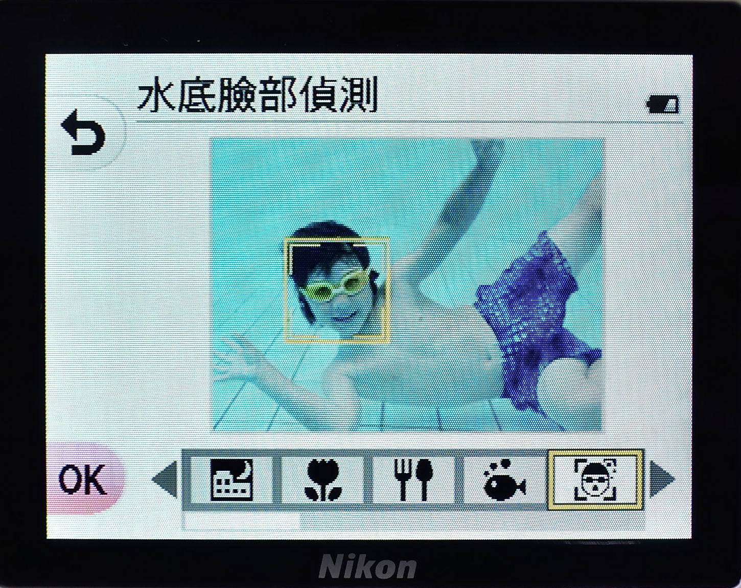 3.內建「水底臉部偵測」功能,當置身水底時,相機會自動偵測並拍攝人臉。